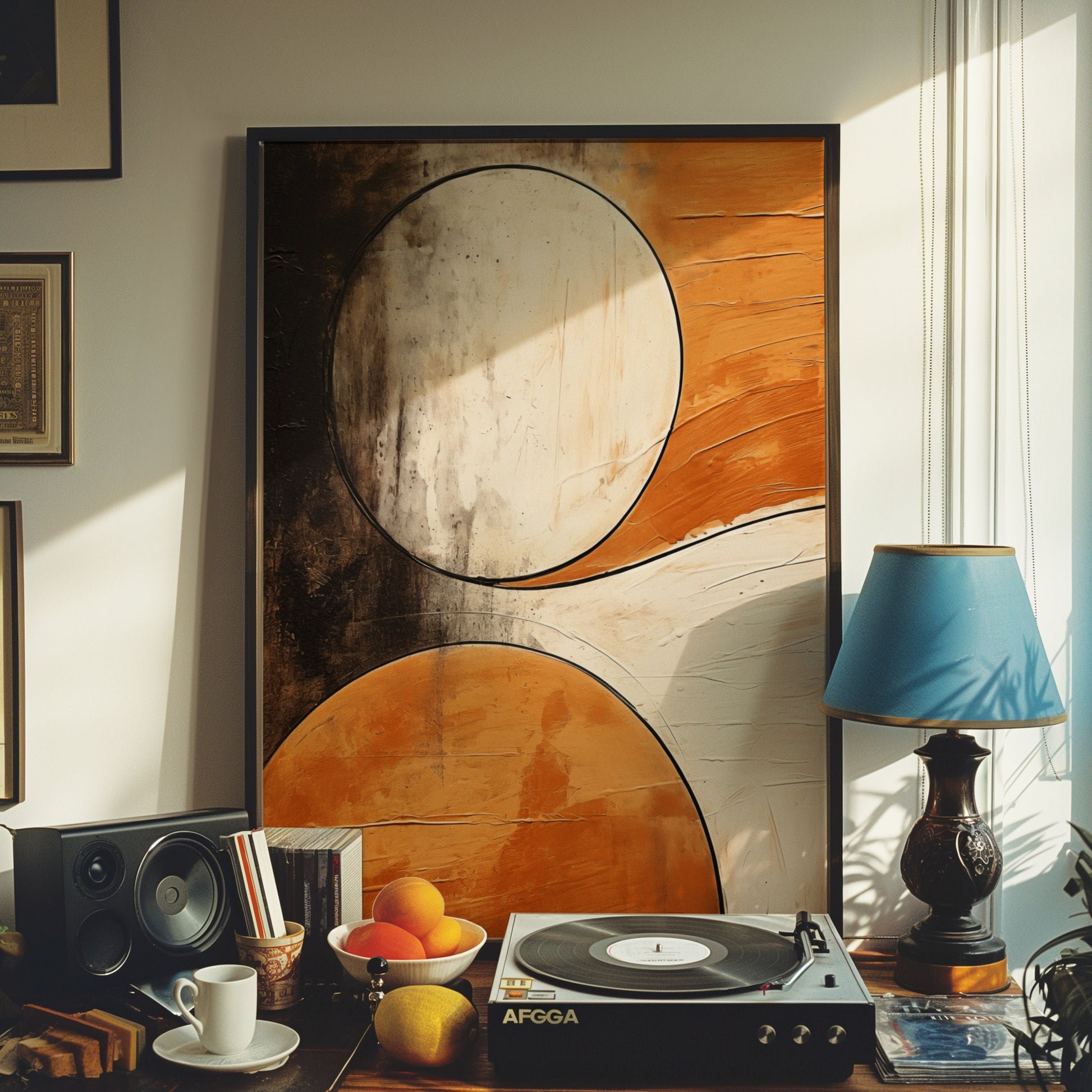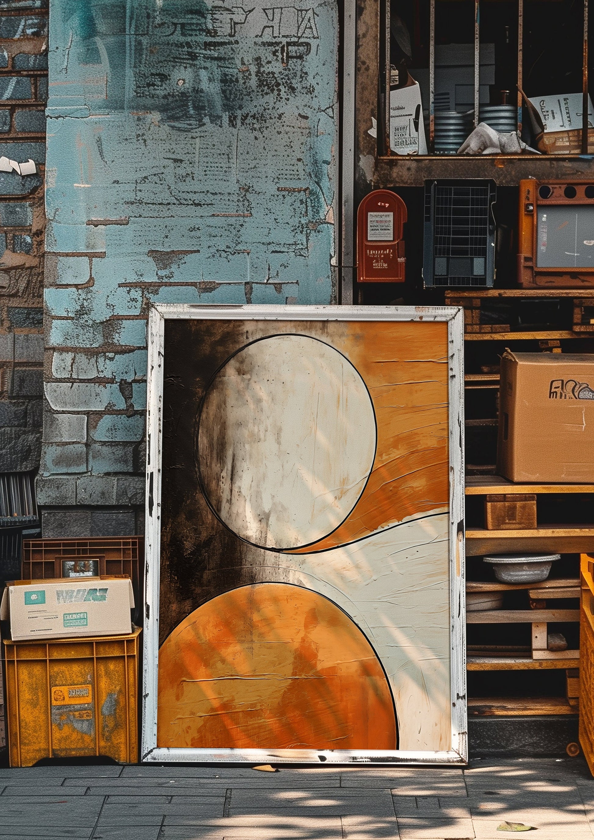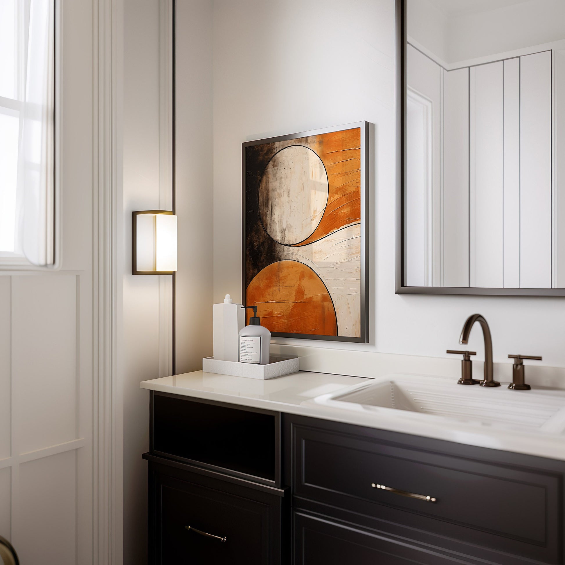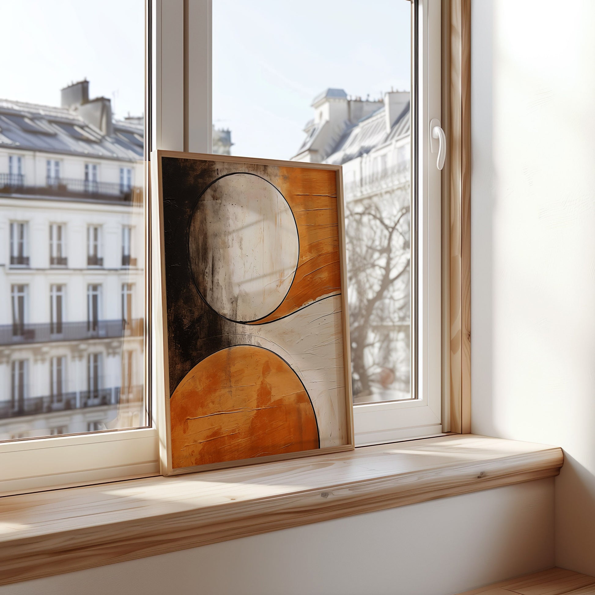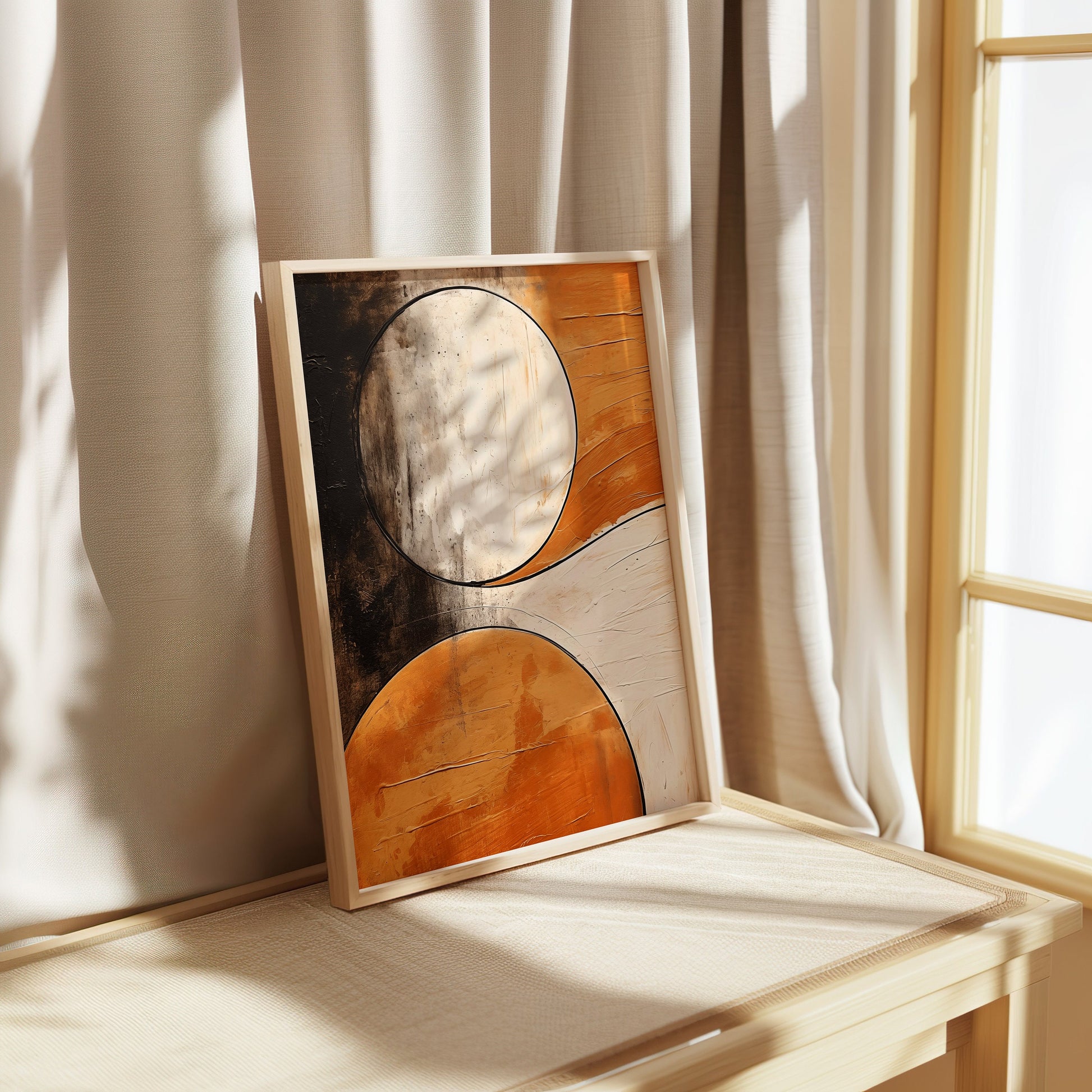 Abstract Circles Art Poster, Textured Geometric Wall Art, Orange and Black Modern Poster, Minimalist Design Home Decor, Contemporary Print