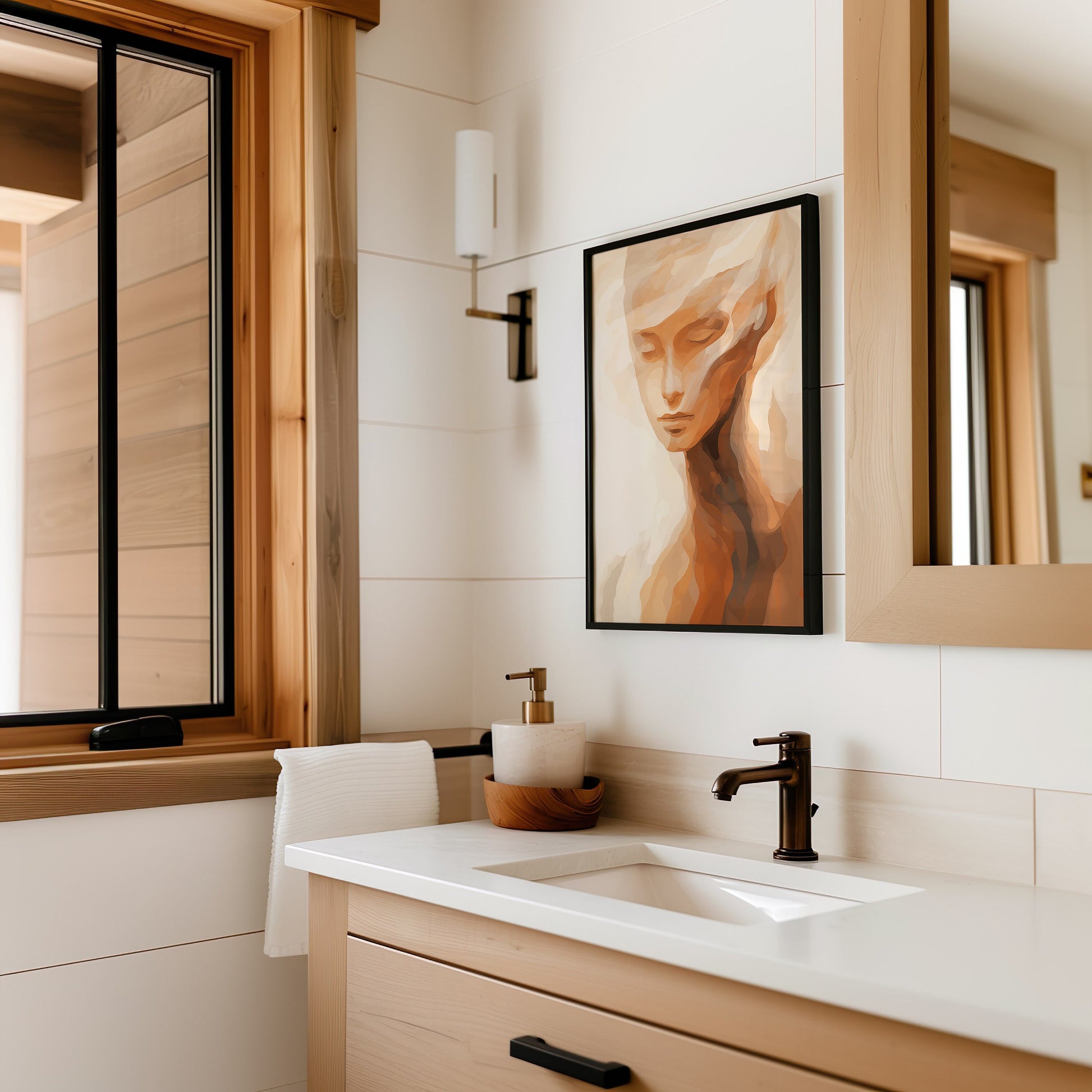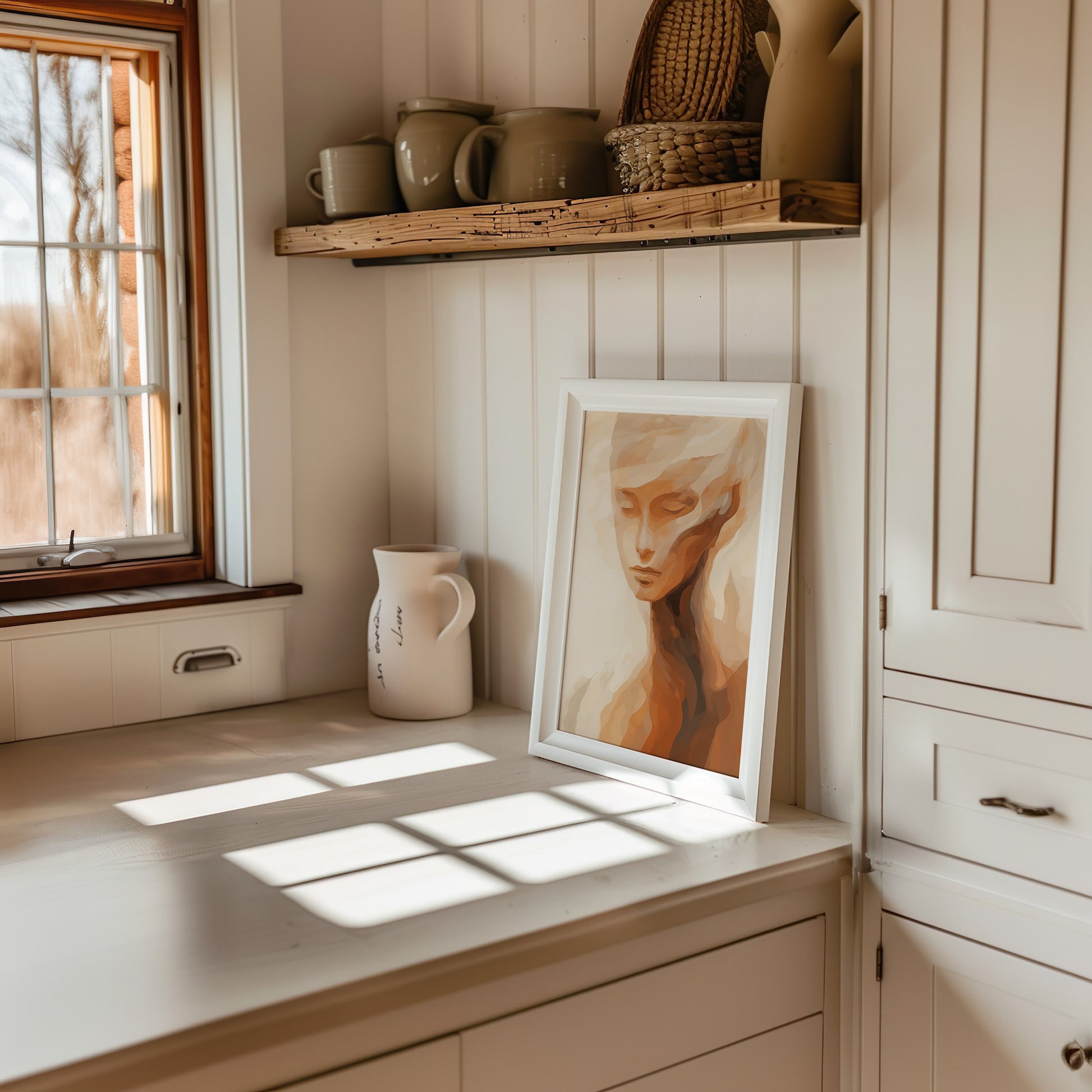Abstract Feminine Portrait Art Print, Minimalist Boho Wall Decor, Earthy Tones Modern Art, Contemporary Face Poster, Serene Home Decor