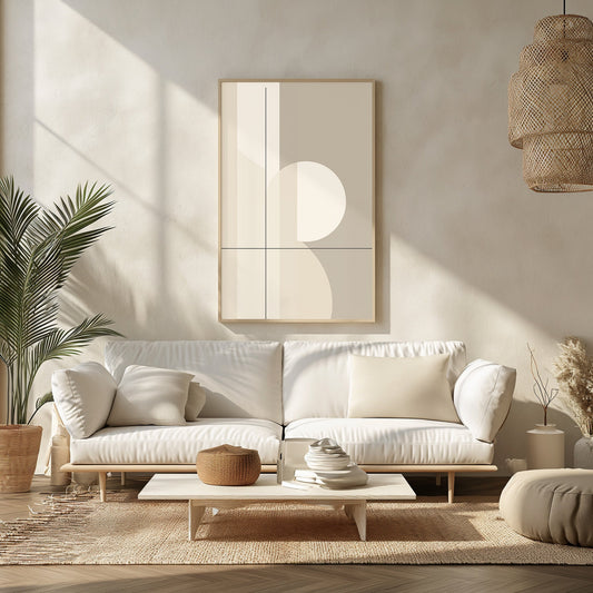 Abstract Beige Harmony, Minimalist Geometric Art, Modern Neutral Tones Canvas, Chic Living Space Decor, Digital Art, Digital Poster