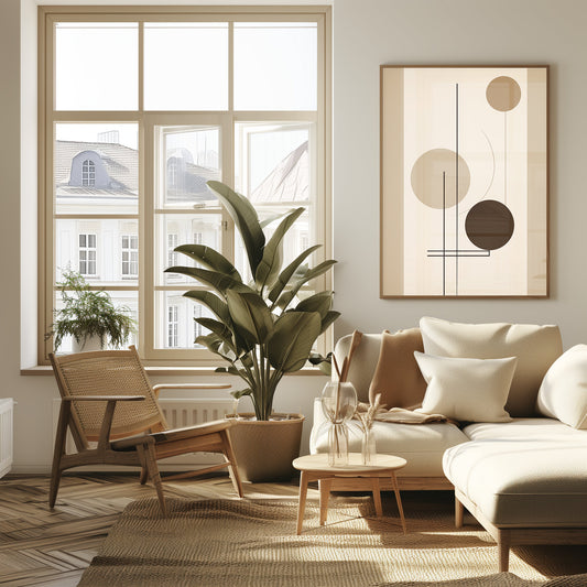 Abstract Balance Artwork, Minimalist Geometric Shapes Print, Neutral Tone Modern Decor, Elegant Living Room Canvas, Digital Artwork