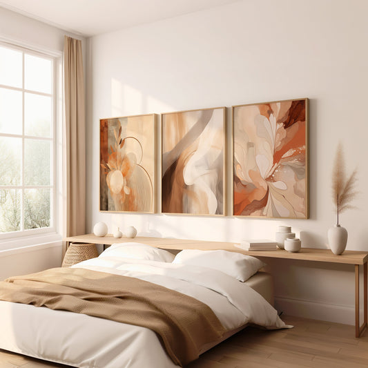 Abstract Boho Poster Set, Neutral Tones Wall Art, Three Piece Minimalist Art Prints, Abstract Canvas Art, Bohemian Poster Set, Poster