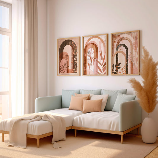 Abstract Arches Art Print Set, Modern Boho Wall Decor, Neutral Tones Archway Poster Trio, Minimalist Botanical Art, Contemporary Home Decor